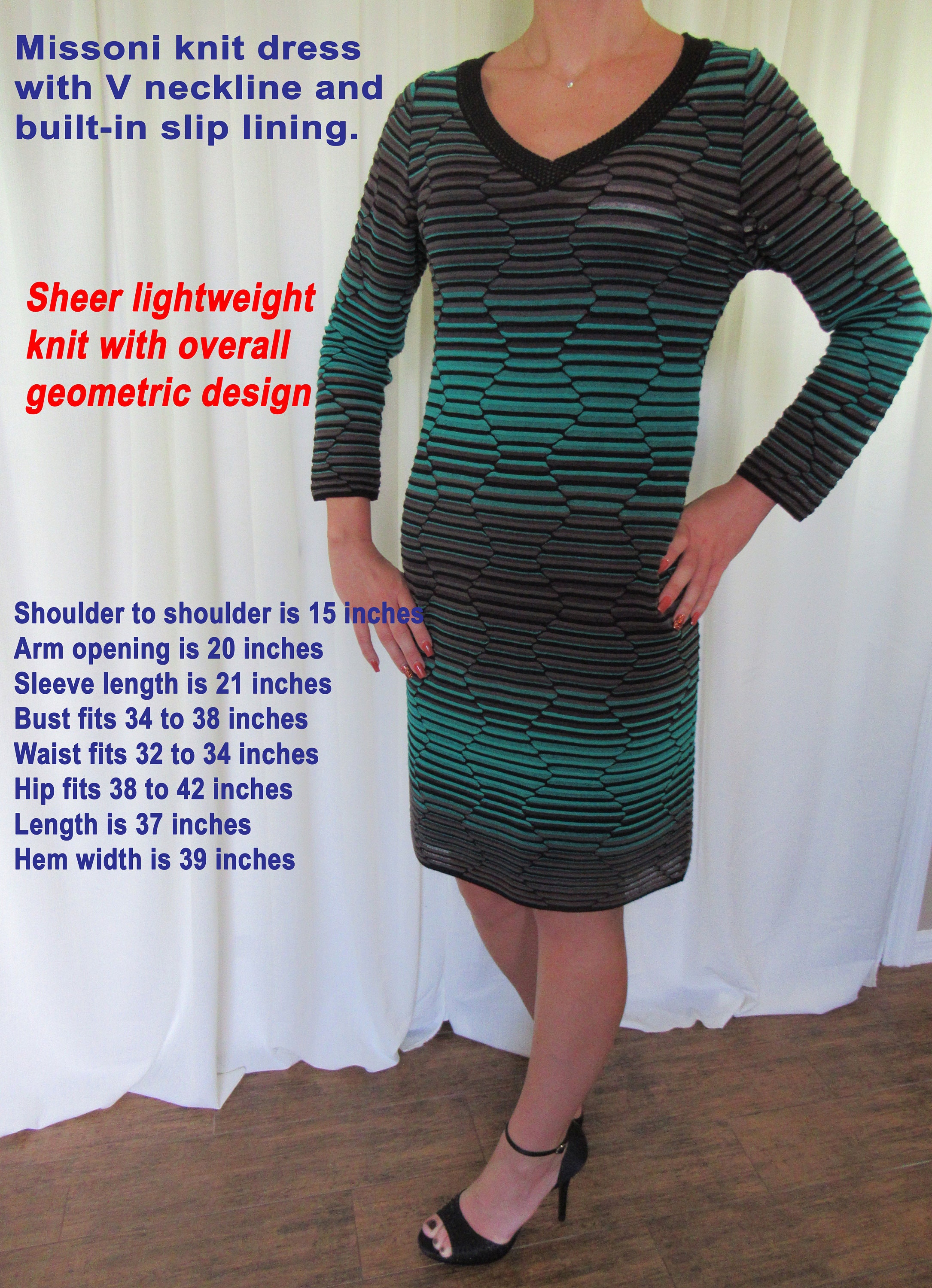 Missoni Knit Dress Teal Brown Black Geometric Sheer Sheath Etsy